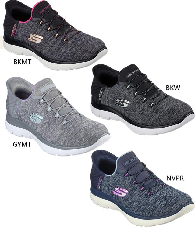 ワイド幅 スケッチャーズ レディース スリップインズ サミッツ ダズリング ヘイズ SUMMITS スニーカー シューズ ハンズフリーシューズ スリッポン ブラック 黒 グレー ネイビー 灰色 送料無料 SKECHERS 149937W