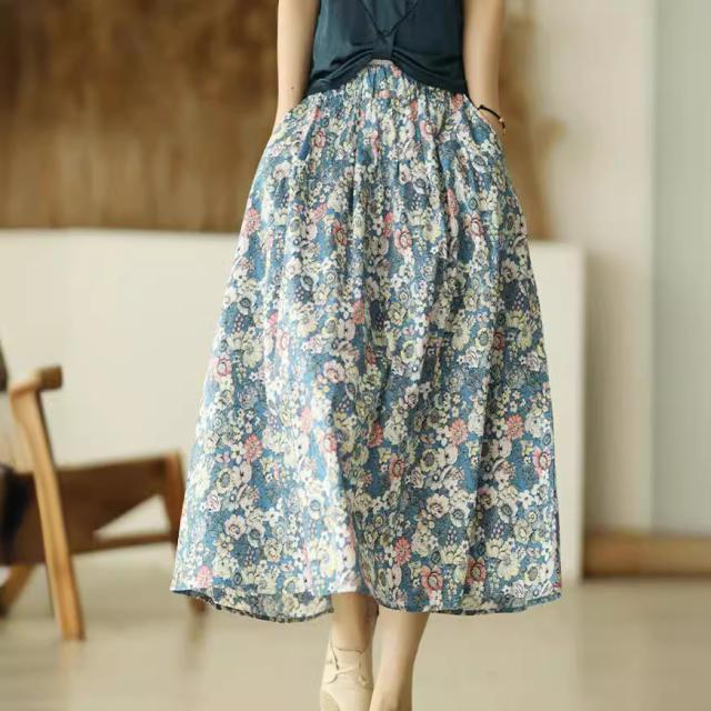 花柄スカート ロング 夏 ロングスカート 春 ゴム スカート 春夏 ミモレ丈 マキシ丈 フレアスカート 低身長 マキシスカート 花柄 ボトムス レディース 体型カバー スカート ロンスカ ウエストゴム