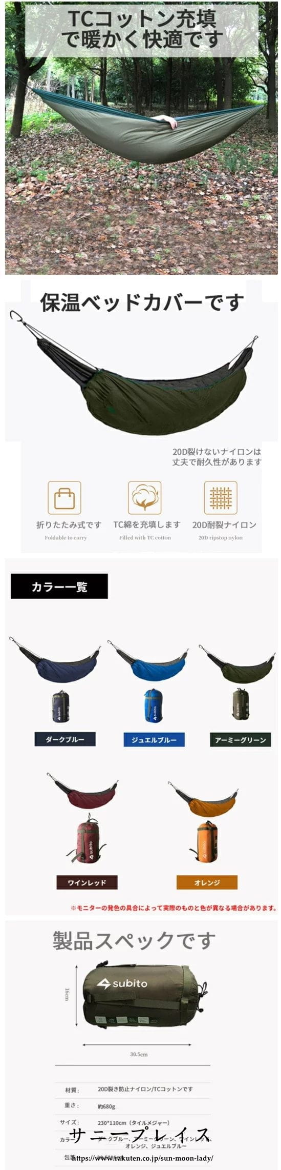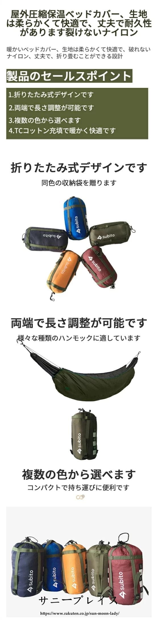 ハンモッ ハンモック用 コンパクト 防寒 持ち運び便利 ハンモックに取り付け 軽量 アウトドア キャンプ 旅行 収納袋付き
