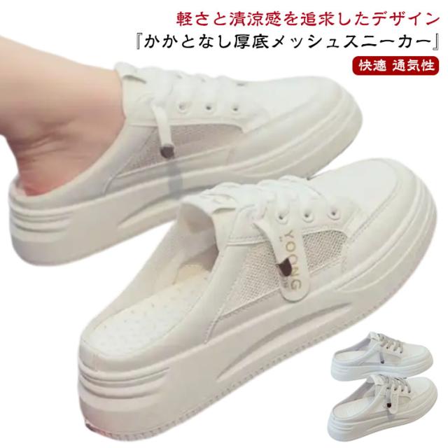 大人 かかとなし 学生 メッシュスニーカー 軽量 サンダル 厚底 ホワイト 白スニーカー スニーカー