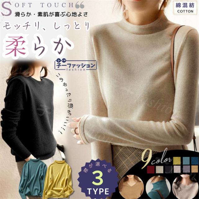 ニット セーター レディース トップス 長袖 無地 春新作 選べる3タイプ Vネック ハイネック クルーネック 新作 レディース 秋冬 カットソー プルオーバー 無地 着回し 伸縮 滑らか 柔らか着痩せ カジュアル おしゃれ 可愛い 洗える バレンタイン