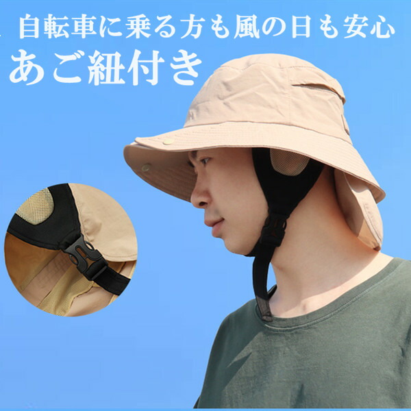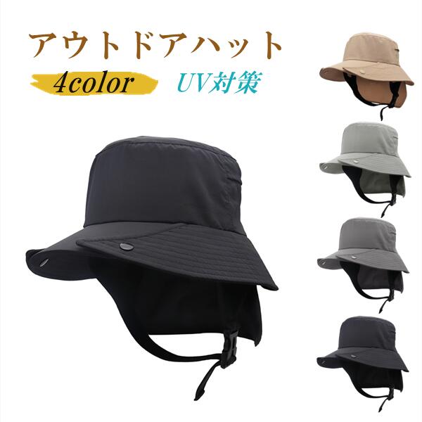 アウトドアハット サファリハット バケットハット 帽子 レディース メンズ 遮光 UVカット 機能性 つば広 サイズ調整可 あご紐