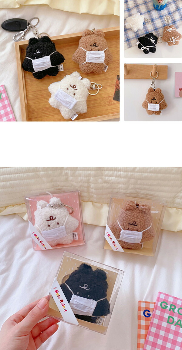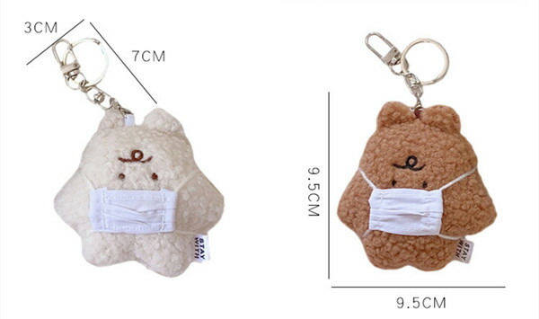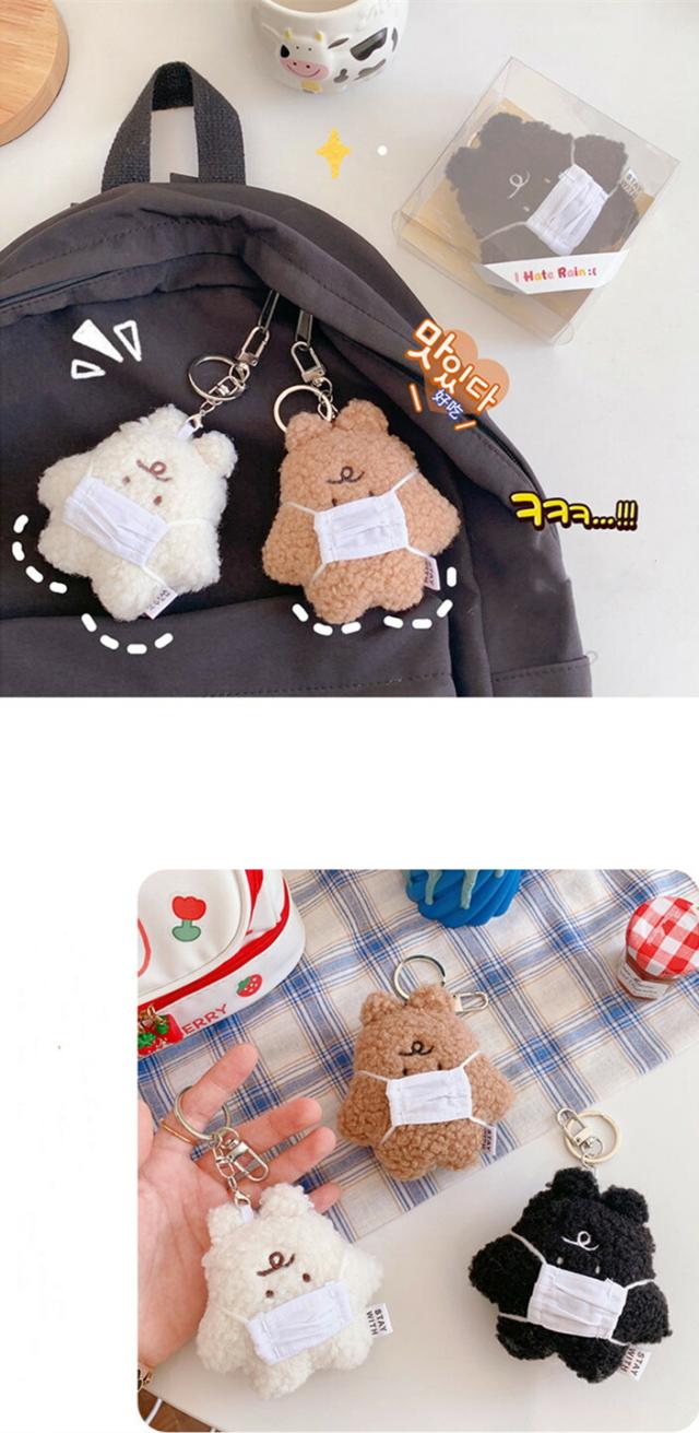 2点入り ぬいぐるみキーホルダー 韓国 可愛い かわいい ぬいぐるみ ふわふわ キーホルダー チャーム ペアキーホルダー マスク熊 キーリング バッグチャーム 可愛いペンダント