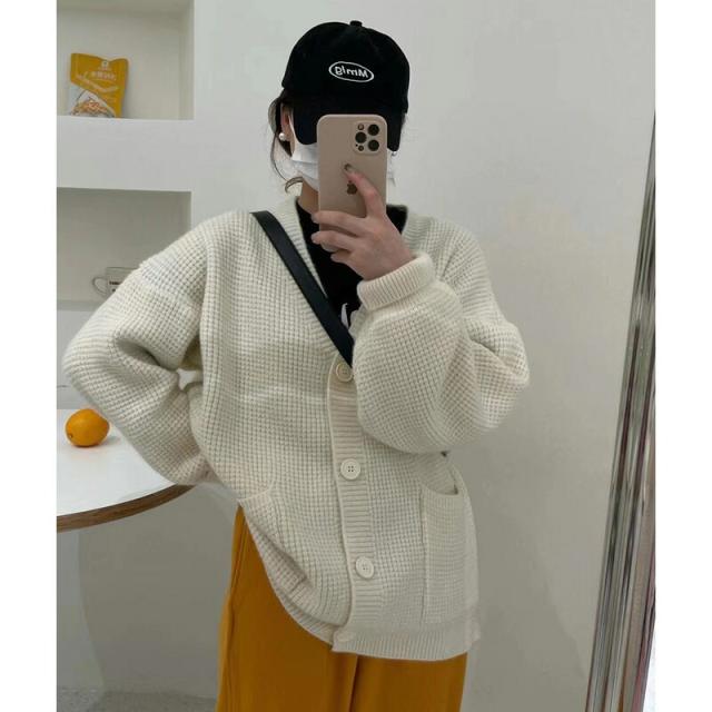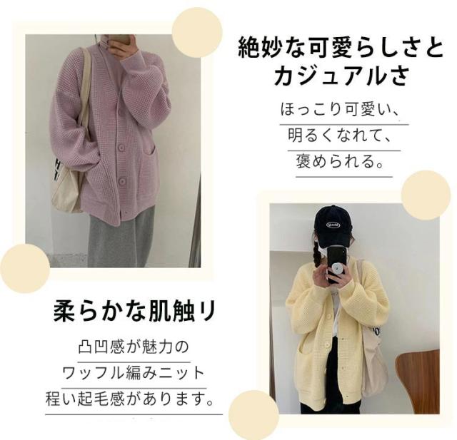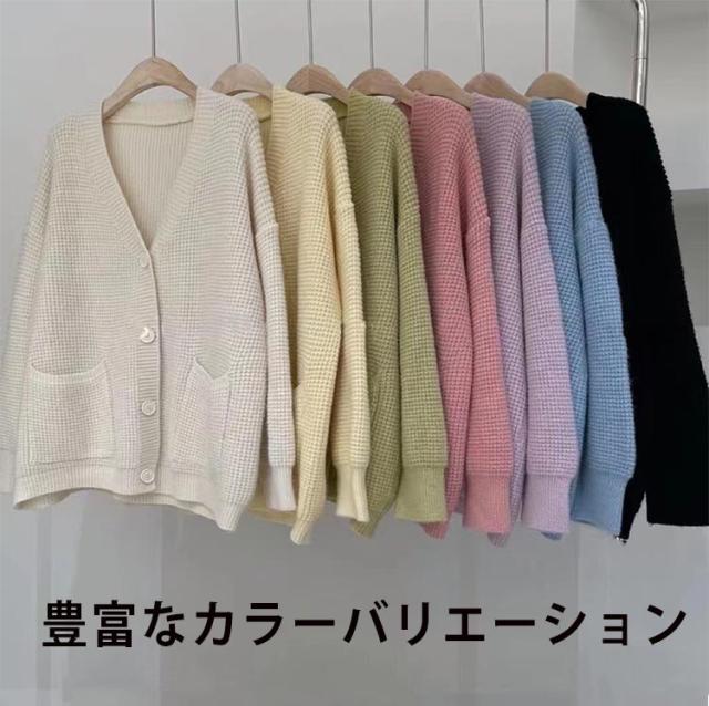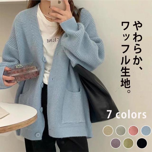 ニットカーディガン ロング丈 レディース 長袖 ワッフル ゆったりレディースファッション トップス カーディガン ボレロ