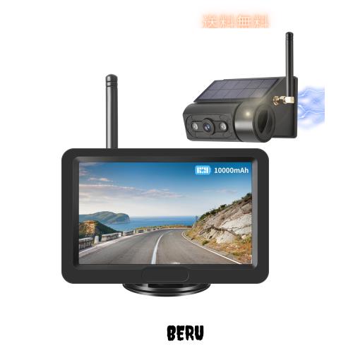 Tonowu バックカメラモニターセット ワイヤレス バックモニター 5インチ 充電式トラックカメラ ソーラーパネル内蔵 HD画質 2分割表示対応
