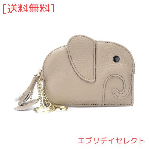 [imeetu] 小銭入れ 可愛いゾウ コインケース ミニ財布 コンパクト 手持ち キーリング付き 無地 薄型 レディス(グレー)