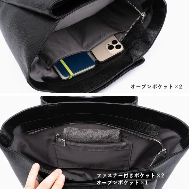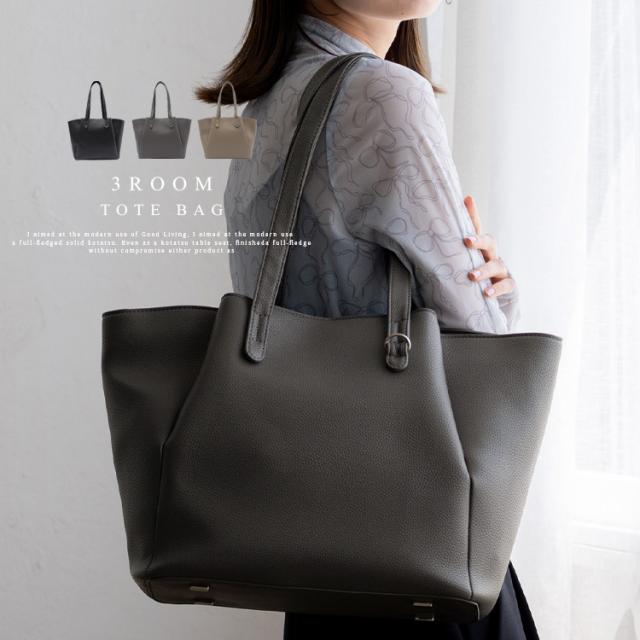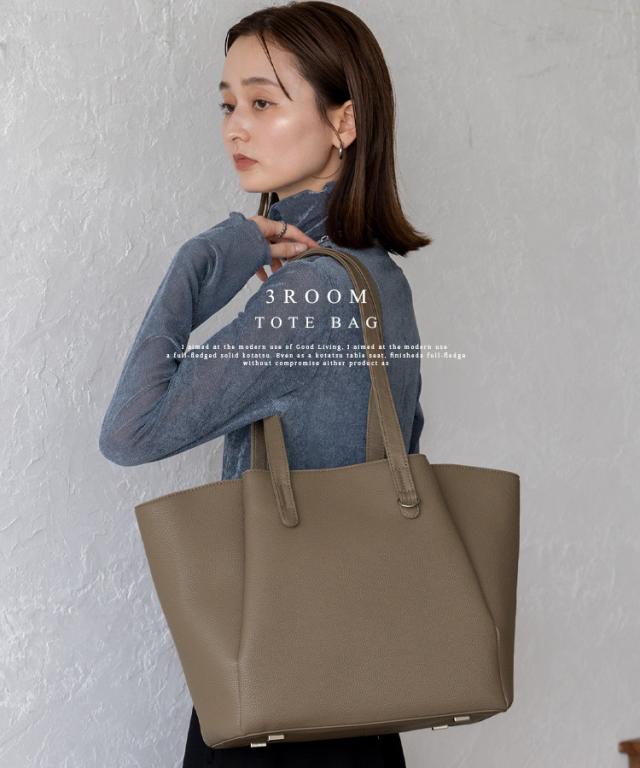 お仕事バッグに嬉しい3ルーム収納のトートバッグ。