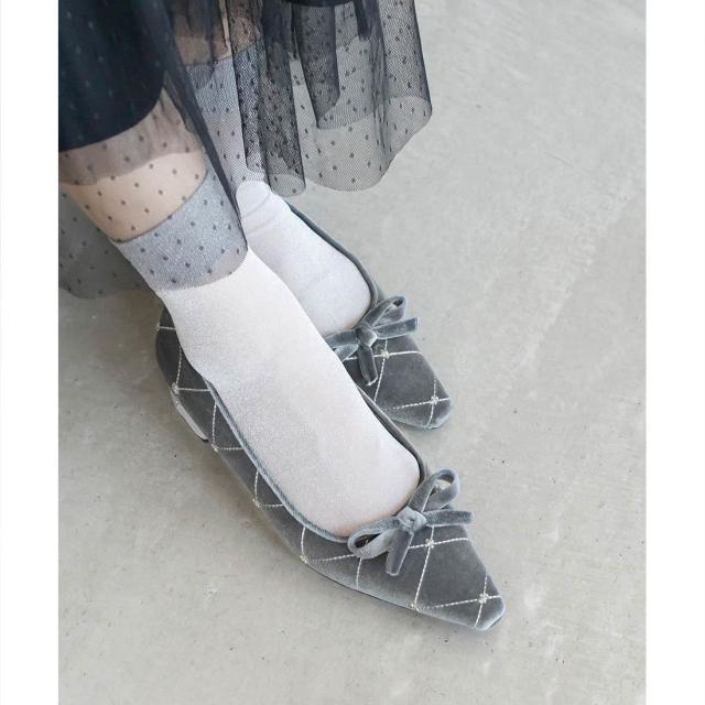 華奢なビーズを施したキルティングデザインがキャッチーな足元を演出してくれるパンプス。