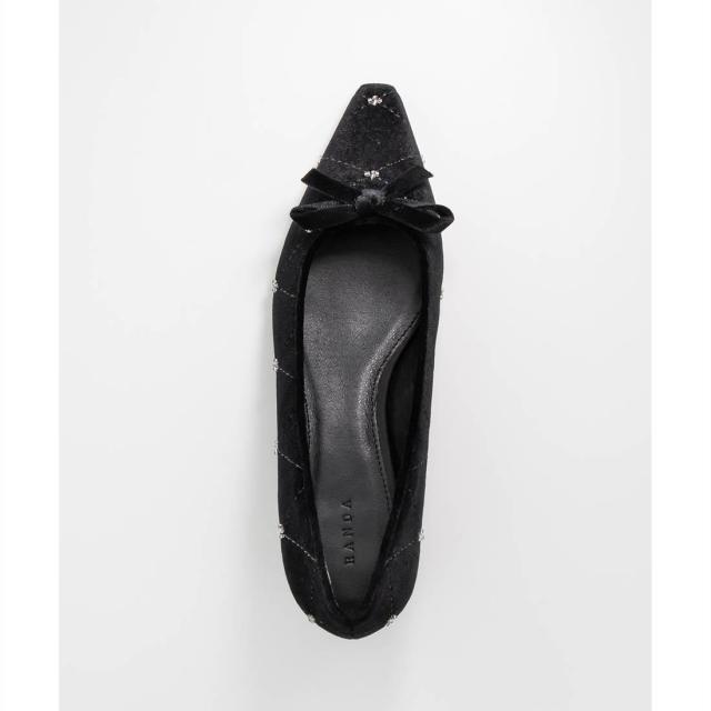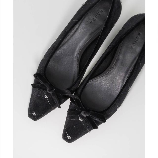 ランダ(RANDA)/【22−25.5】ビーズ×キルティング リボン ローヒールパンプス