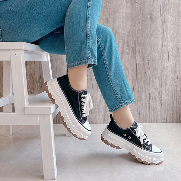 定番デザインに、トレンドのトラックソール×厚底ソールを組み合わせて、スタイリッシュな印象に♪