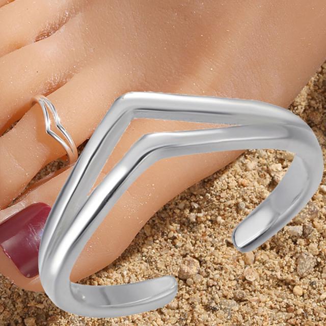シルバー925製のVカットした2連風の足の指輪トゥリング。