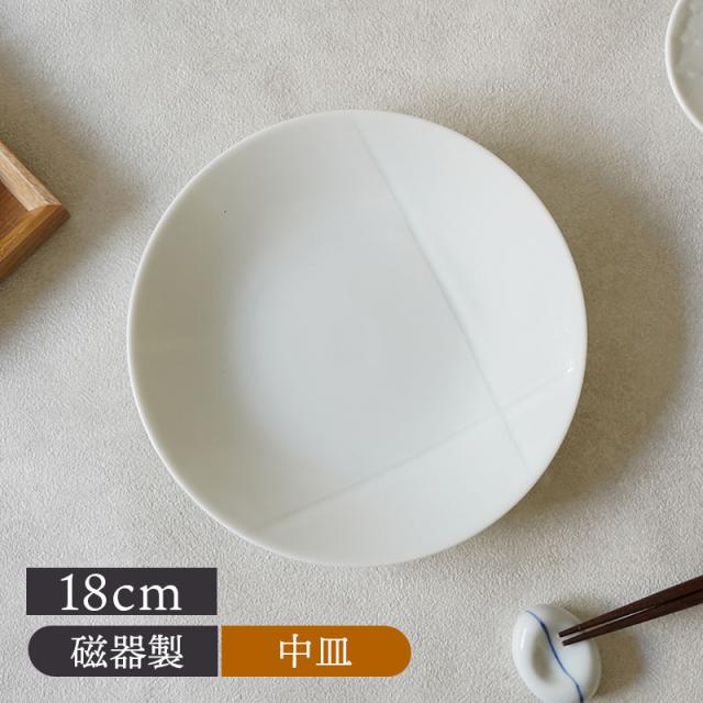 中皿 18cm 白磁線彫り cross アウトレット 和食器 おしゃれ モダン 和モダン シンプル シック プレート お皿 皿 食器 中皿 取り皿 ケーキ皿 サラダ皿 デザートプレート パン皿 白い食器