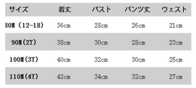 | サイズについての説明 | サイズ 着丈 バスト パンツ丈 ウエスト ※サイズは当店平置き実寸サイズの為、多少異なる場合がございます。 |