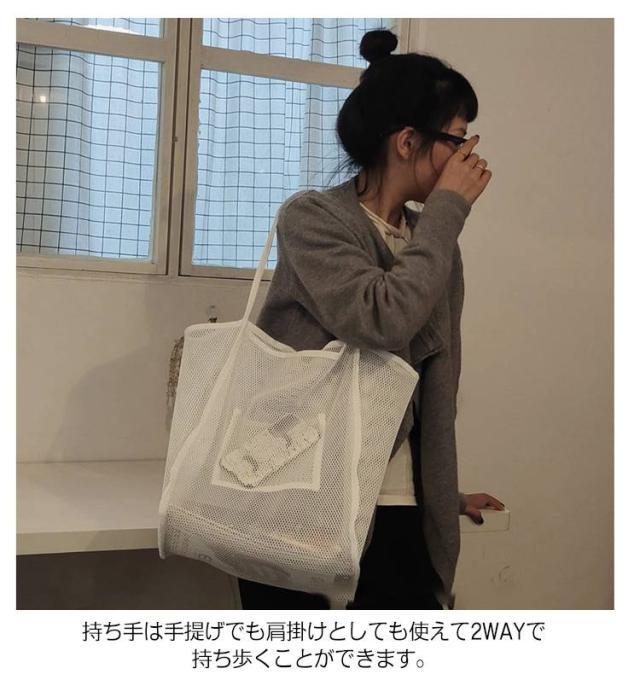 | 夏にぴったりの涼しげなメッシュトートバッグです。 水着や着替え、タオルなどたくさんの荷物を収納できます。 持ち手は手提げでも肩掛けとしても使えて2wayで持ち歩くことができます。 外側にポケットがあるので小物などをたくさん収納可能です。 メッシュで通気性がよく、汚れにくく、水を残りません。 使わないときは折りたたんで収納できるので、どこでもお使いいただけます。 | |