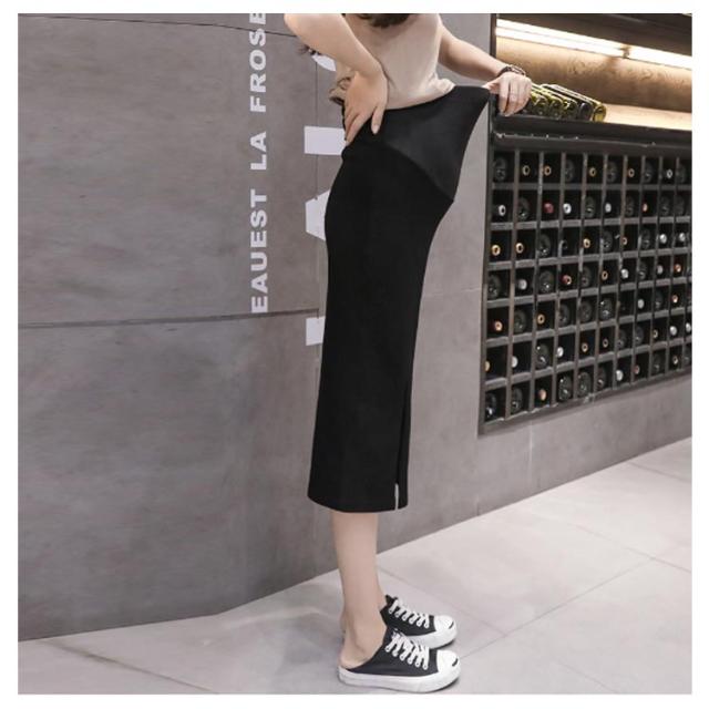 マタニティスカート タイト 膝下丈 マタニティ スカート 産後 スリット ニットスカート ミモレ丈 タイトスカート マタニティ 産前 ロングスカート アジャスター調節 ハイウエスト 春 夏 秋 ブラック