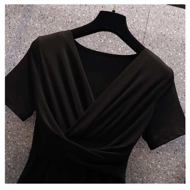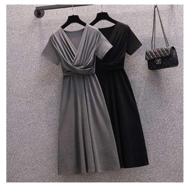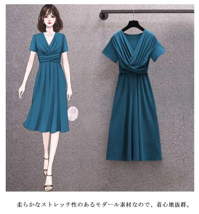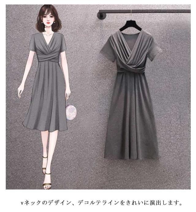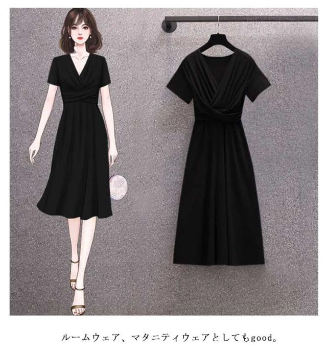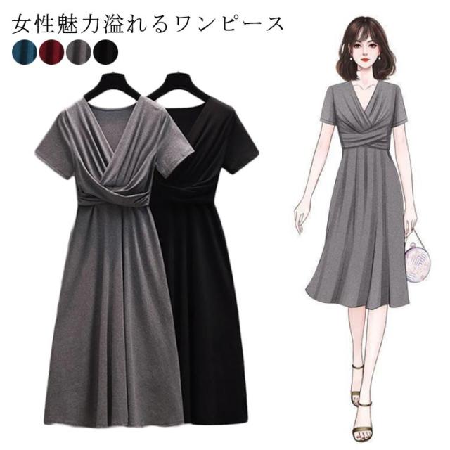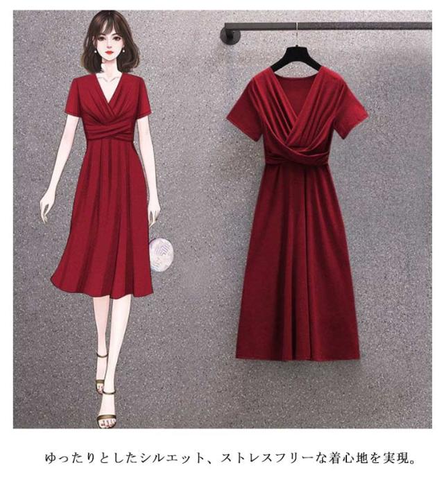 カジュアル レディース ワンピース おしゃれ 半袖ワンピ 夏 春 大人 Vネック スリム 着?せ マタニティワンピース Tシャツワンピース ハイウエスト Aライン 膝丈ワンピース ひざ丈 脚長 ストレッチ シンプル タイト 大きいサイズ 無地 シンプル 大人 女性 送料無料