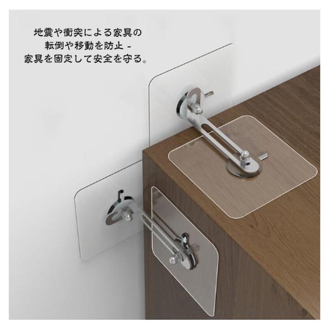 | 壁に穴をあけることなく、簡単に取り付けられる地震対策グッズです。 【耐震ストッパー】地震や衝突による家具の転倒や移動を防止 - 家具を固定して安全を守る。 【穴開け不要】簡単取り付け、工具不要の家具転倒防止! 【家具の落下防止】地震時に家具の倒れ、揺れ、衝突を防ぐために使用。家具と壁、天井の狭い隙間にぴったり。棚、冷蔵庫、本棚、戸棚などの場所で家具の転倒を最小限に抑える。 【あらゆる種類の家具に適用可能】取り外し可能なデザインなのでいろんな家具に使用できる。ベッド、ソファー、本棚、ワイン棚、装飾棚など、揺れやすい家具に適しています。小型でも、ベッドヘッドプレートバンパーで揺れ問題を解決します。 【子供の転倒アクシデントを防止】小さなお子様のいる家庭にいいです。お子様が家具に登ったりして家具が転倒するのを防止します。 | |