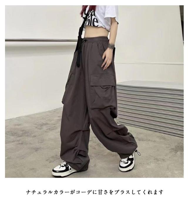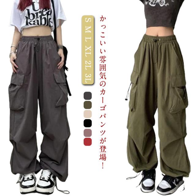 パンツ 夏 カーゴパンツ ワイド 薄手 春 カーゴパンツ ロングパンツ 秋 カジュアル ボトムス ズボン 無地 ウエストゴム ダンス用 動きやすい 女性用 シンプル かっこいい