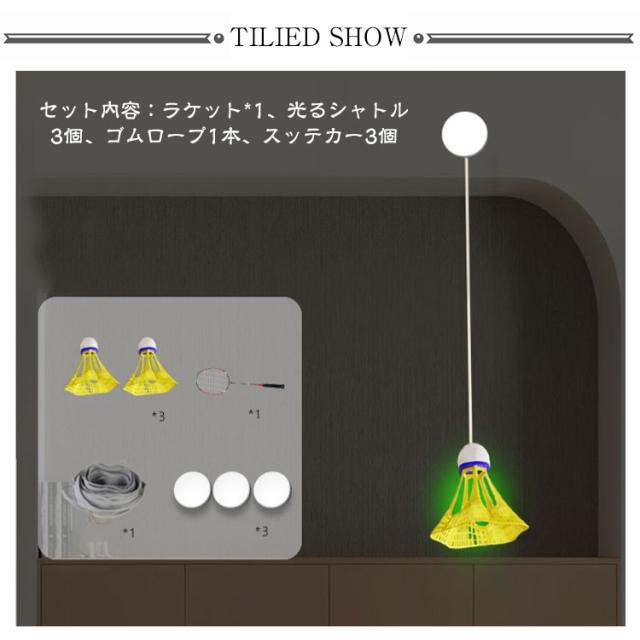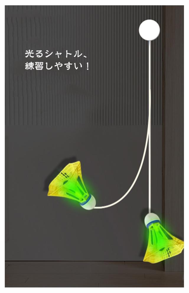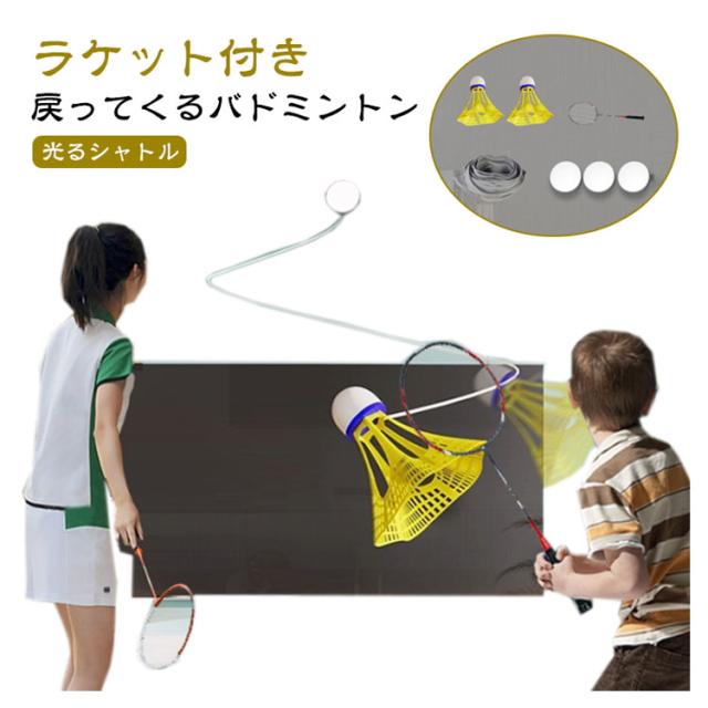 シングルスバトミントン ラケット付き!光るシャトル 一人練習 バトミントン セルフ 練習器具 室内バトミントン ラケット付き!光るシャトル トレーニング 戻ってくる 初心者向け 粘着式 バドミントントレーナー シングルプレーヤー
