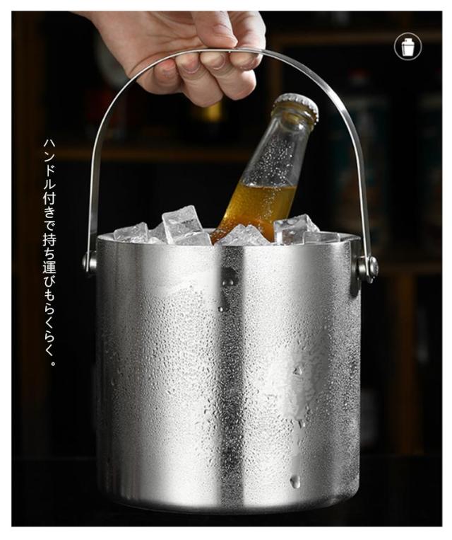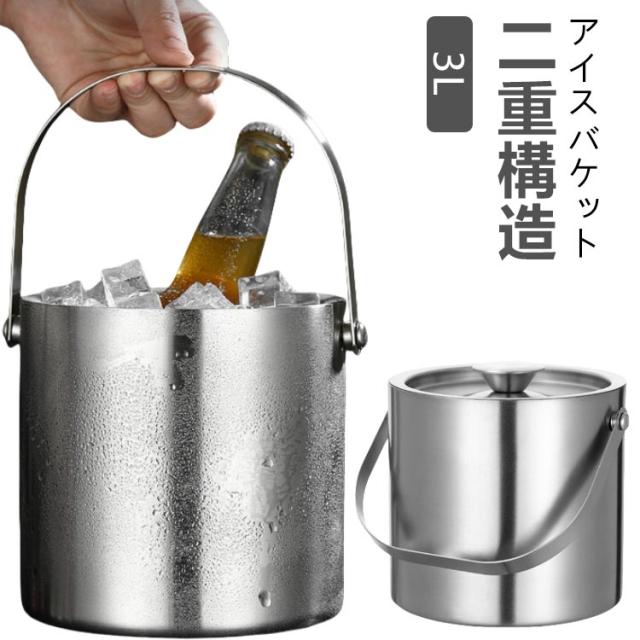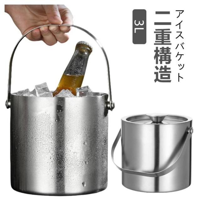 ステンレス アイススクープ 3L 氷バケツ アイスペール 真空二重 クーラー ワインクーラー ワイン 酒 蓋付き アイスバケット 氷入れ 保冷 ハンドル付き 溶けにくい シャンパンクーラー 保冷容器 大容量 3L 業務用 パーティー 家飲み