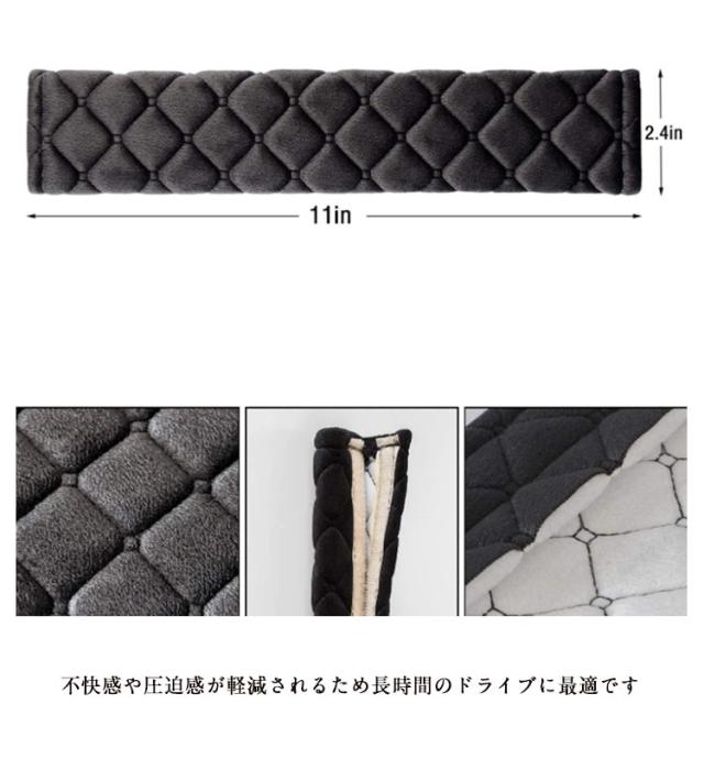 | 一般的なシートベルトであれば すべての車種で対応しております クッション性の高いシートベルトカバーになります 柔らかいのでお子様がシートベルトを痛がることがありません! 装着はマジックテープのため、簡単に着脱できます 内装や好みに合わせてブラック色 不快なシートベルトとの接触面を優しく保護してくれます 不快感や圧迫感が軽減されるため長時間のドライブに最適です | |