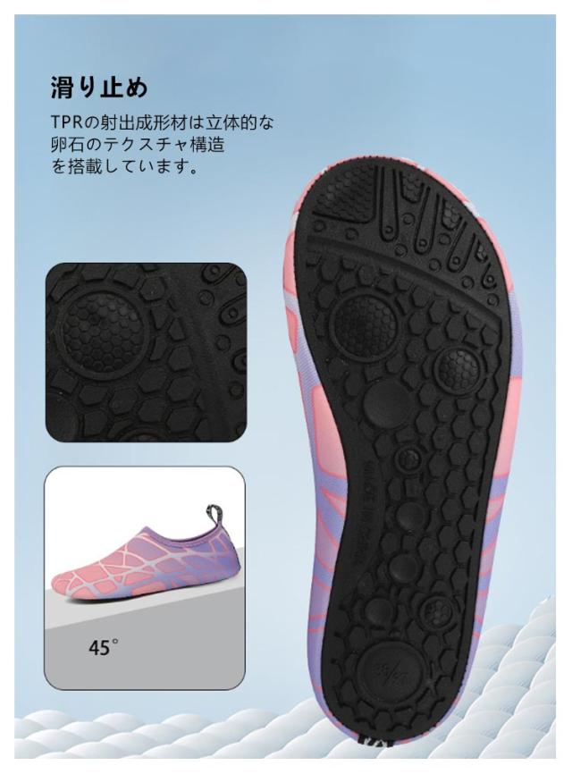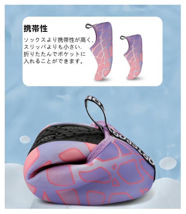 | 超軽量・コンパクト 水陸両用マリンシューズ 21-27.5cm 男女兼用 <お勧めポイント> ●弾性靴口 靴化の口の弾力性は設計して、穿きやすくて足を引っ張らないです。 ●空気を通すと速く乾きます 生地は通気性があり、ゼロバインディングで快適です。 ●軽量 持ち歩く、極薄、靴下のように軽い ●携帯性 ソックスより携帯性が高く、スリッパよりも小さい.折りたたんでポケットに入れることができます。 ●通気性・排水性 穴インソールのデザイン、通気性と排水性に優れ、においを低減 ●滑り止め TPRの射出成形材は立体的な卵石のテクスチャ構造を搭載しています。磨耗に強い滑り止め係数をアップグレードして運動はより安全です。 | |