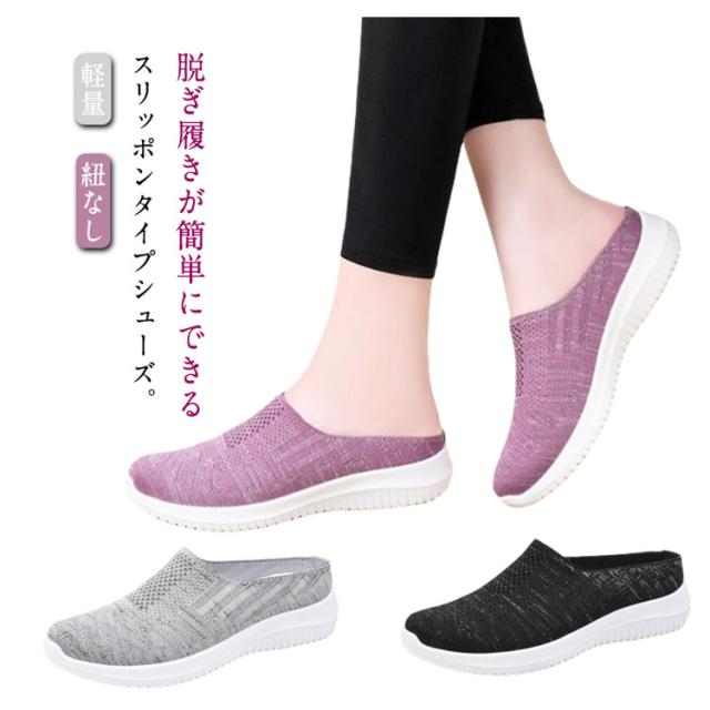 スリッポン お母さん かかとなし ナースシューズ レディース 靴 ニットスリッポン スリッポン ウォキングシューズ スリッポンスニーカー 紐なし 看護師 軽い 履きやすい サボ サンダル かかとなしシューズ 中高齢者靴 母の日