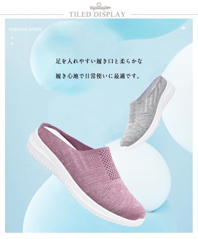 | 脱ぎ履きが簡単にできるスリッポンタイプシューズ。 足を入れやすい履き口と柔らかな履き心地で日常使いに最適です。 ささっと履けてとっても便利。ニットメッシュ素材のため通気性も抜群です。 普段使いはもちろん、玄関先やベランダでも脱ぎ履きしやすく活躍できるアイテム! かかとの靴擦れでお困りの方にもおすすめです。 | |