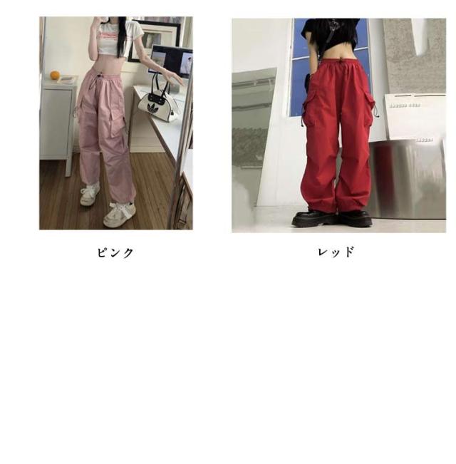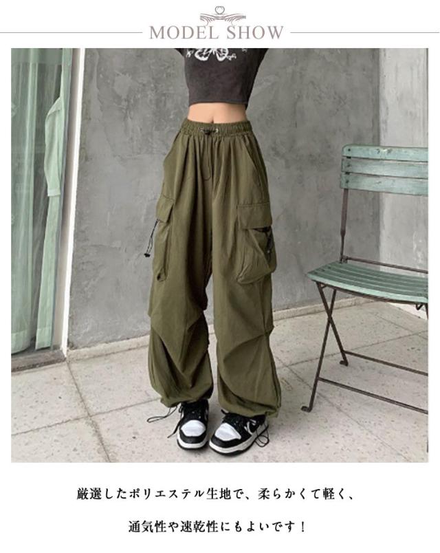 カーゴパンツ 薄手 ロングパンツ 夏 カーゴパンツ 無地 カジュアル ボトムス 春 秋 パンツ ズボン ワイド ウエストゴム ダンス用 動きやすい 女性用 シンプル かっこいい