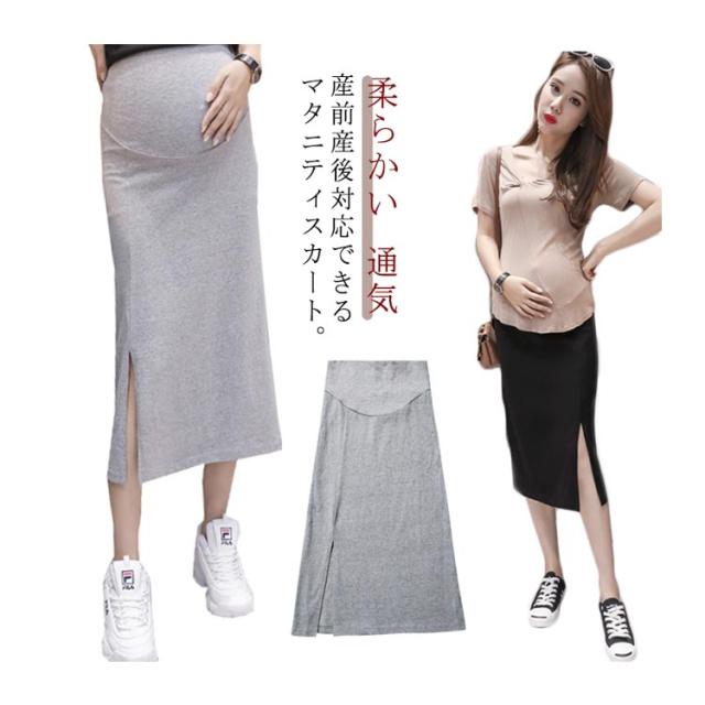 マタニティスカート タイトスカート スリット 膝下丈 ニットスカート マタニティ ロングスカート ニットスカート ミモレ丈 スカート タイト 産前 産後 アジャスター調節 ハイウエスト 春 夏 秋 通勤