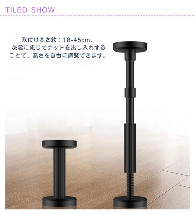 | サイズについての説明 | サイズ:取付け高さ約:18-45cm 2本セット:耐荷重400kg 中間棒直径:24.6mm ハンドル外輪直径:31.8mm 2本セット重量0.725kg 高さ調整方法:中央のスクリューをねじる ※サイズ計測には誤差が生じます。 |