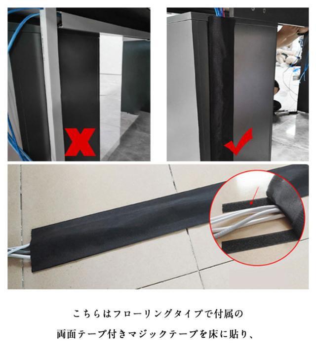 | オフィス、事務所のLANケーブルや電源配線を綺麗に整理できる配線カバーです 煩雑になりがちなデスク周りの配線をスッキリ隠せます ハードタイプの床モールとは異なり、ソフトタイプなので段差につまづくこともありません こちらはフローリングタイプで付属の両面テープ付きマジックテープを床に貼り、 その上にマジックテープで装着できます | |