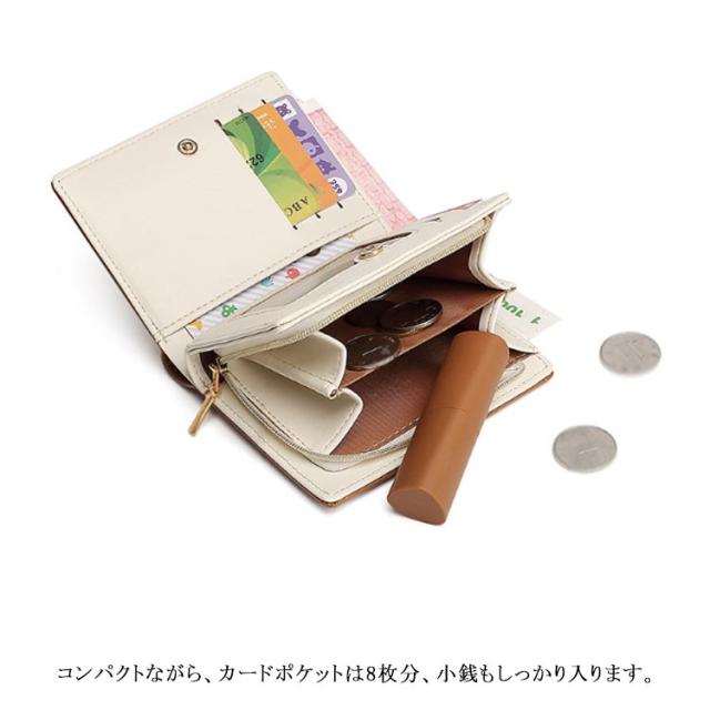 | かわいらしいカラーの二つ折り財布。 細部までこだわった丁寧なつくりで、使いやすさも抜群。 コンパクトながら、カードポケットは8枚分、小銭もしっかり入ります。 プレゼントにもおすすめです。 | |