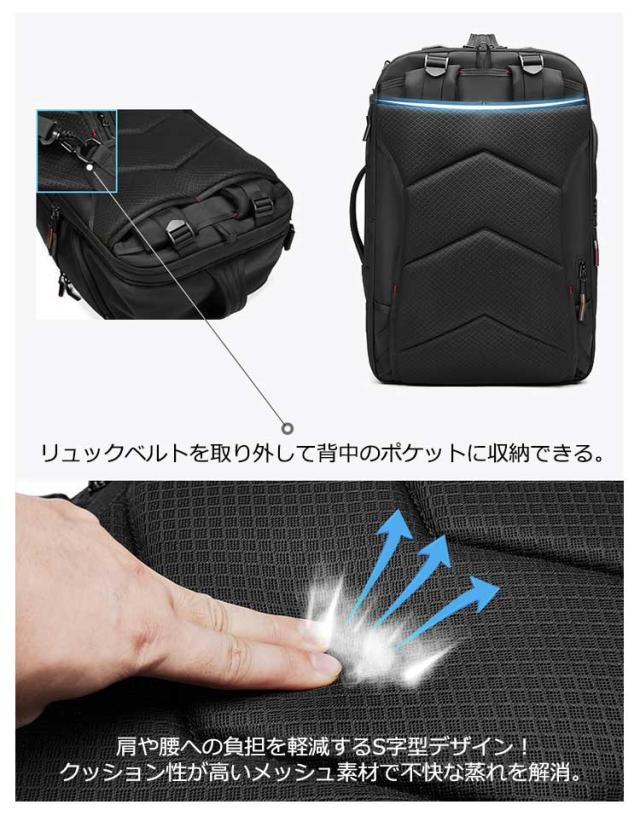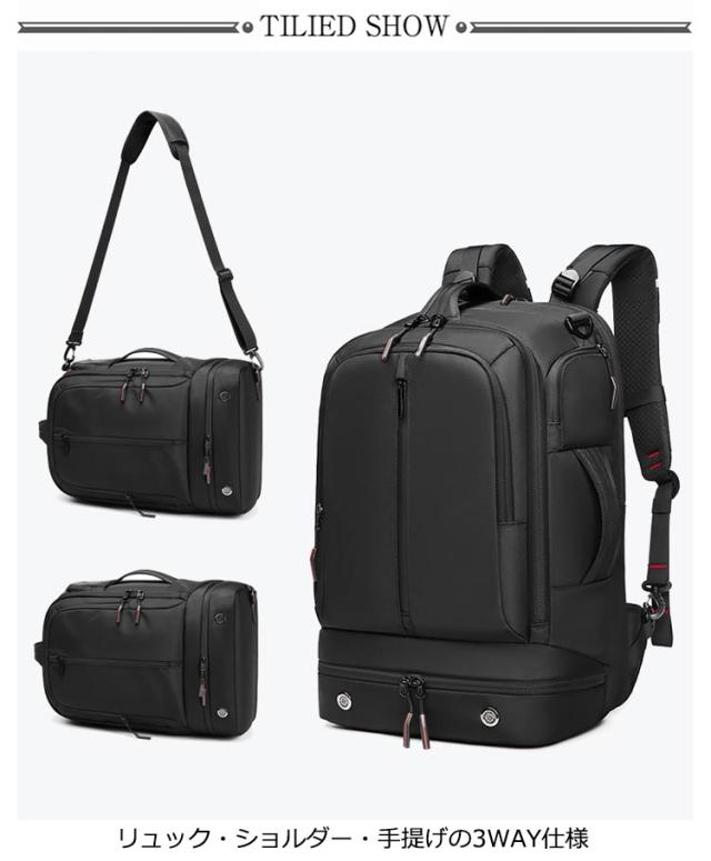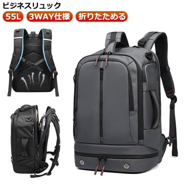 ビジネスリュック メンズ 55L 大容量 撥水 防水 リュックサック 3way 斜め掛け 手提げ 大きめ 軽量 ビジネスバッグ 通勤リュック A4 pcバッグ 靴収納 出張 旅行 ジム 防災 ナイロン 黒 通学 大人 大学生 丈夫 おしゃれ 折りたためる 送料無料