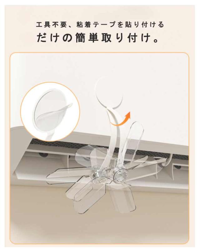 | エアコンの直撃風を拡散、解消♪空気循環を良くし電気代節約に。 エアコンの風で動くので電気代不要!風車のようにファンが回り風を攪拌させますので、エアコンの不快な直撃風を和らげ、やんわり気流でみんな快適。 回転するファンが空気を効率的に循環させ「暑すぎ」「冷えすぎ」といった温度ムラを解消、空調効率アップし、省エネ。 工具不要、粘着テープを貼り付けるだけの簡単取り付け。 アームを曲げることができるから、角度調節可能のエアコン風よけファン。 | |