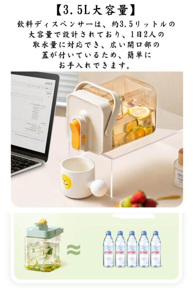 冷蔵庫ポット ドリンクピッチャー 蛇口付き 大容量 3.5L 冷水筒 ピッチャー 水タンク 麦茶ポット 2.3L ティーポット 飲料水バケット ドリンクピッチャー フルーツティーポット 耐熱 保冷 透明 密封性がよい 洗いやすい 屋外 家庭 お店用 飲料水 お茶 炭酸 水出し
