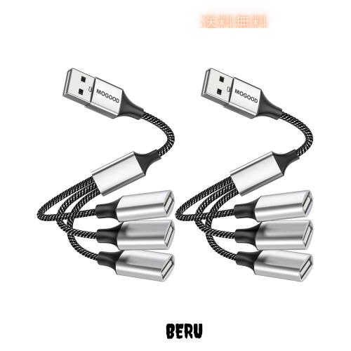 MOGOOD USB分岐器ケーブル 3-in-1USBスプリッタ USB電源分岐器 1オス3メスUSB 2.0アダプタ USB拡張ケーブル USBマルチポート充電/データ