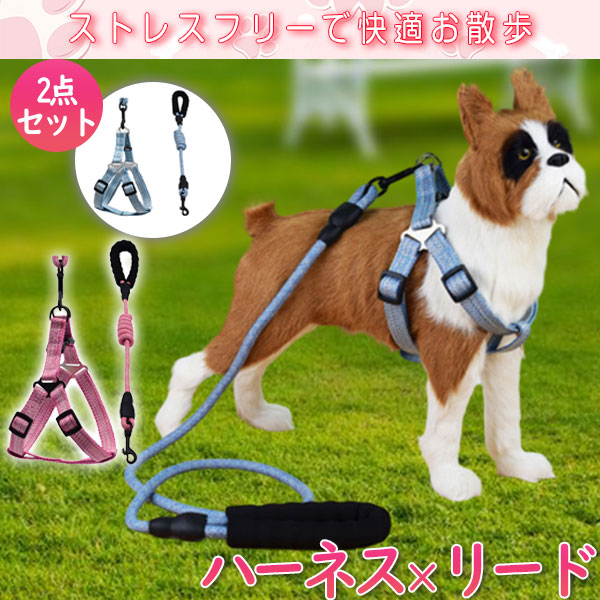 ポイント超超祭利用可 犬 リード ハーネス 犬ハーネスリードセット 犬用ハーネス おしゃれ 首輪 散歩 胴輪 小型犬 中型犬 脱げない 簡単装着 猫 ドッグ
