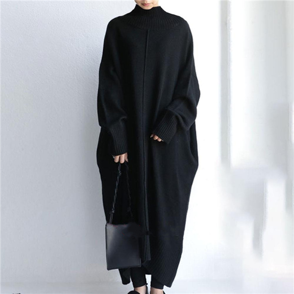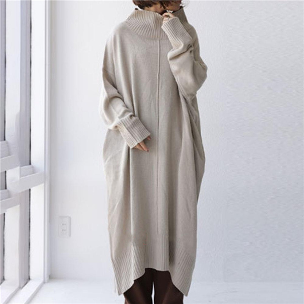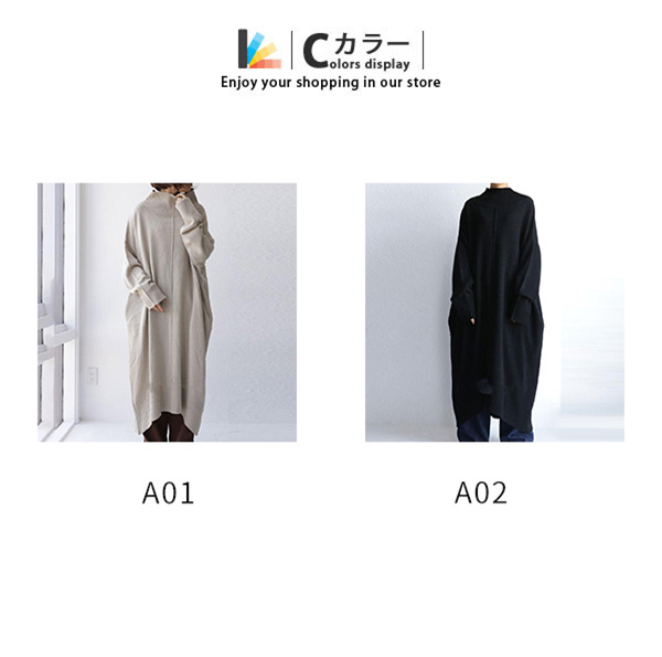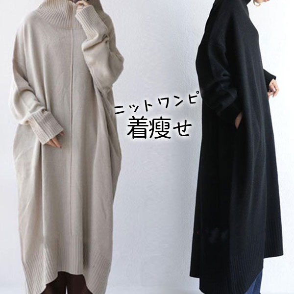 ニットワンピース セーター レディース 洗える 長袖 体型カバー 秋冬 ハイネック 膝丈 カシミヤタッチ ゆったり ロング丈 トップス 無地 タートル