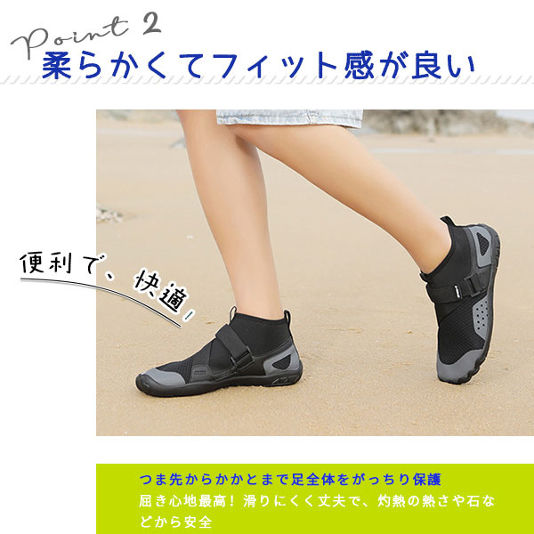 ◎地面の岩石の破片や殻から足をしっかり保護して怪我を防ぎます。