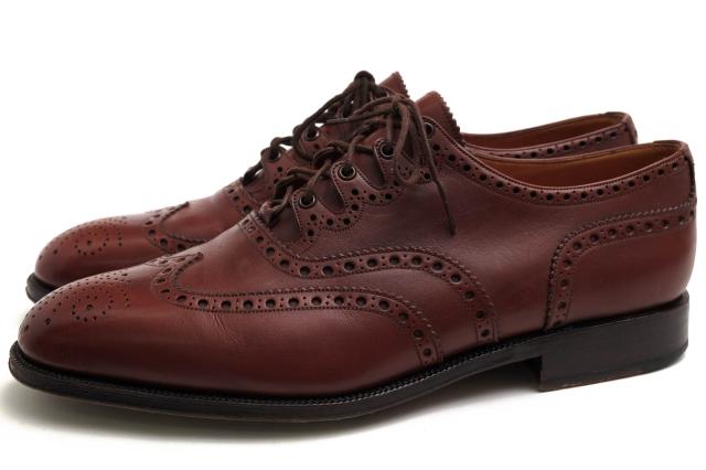 ○ヤンコ YANKO 牛革 カーフ ビジネスシューズ 104010 ギリーシューズ ウイングチップ レザーソール グッドイヤーウェルト製法 メ 中古