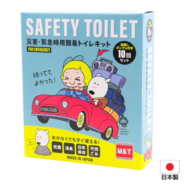 災害・緊急用簡易トイレキット セーフティートイレ 10回セット 目隠しポンチョ付き レモン&シュガー SAFETY TOILET 災害用簡易トイレ 抗菌 消臭 可燃ごみ 非常用携帯トイレ 15年保存(保存期限2039年) 日本製