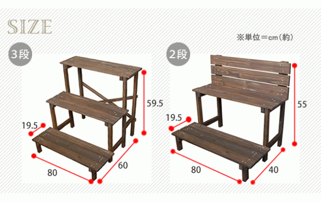 | ■サイズ | 3段…幅 約800×奥行 約600×高さ 約595mm 2段…幅 約800×奥行 約400×高さ 約550mm |