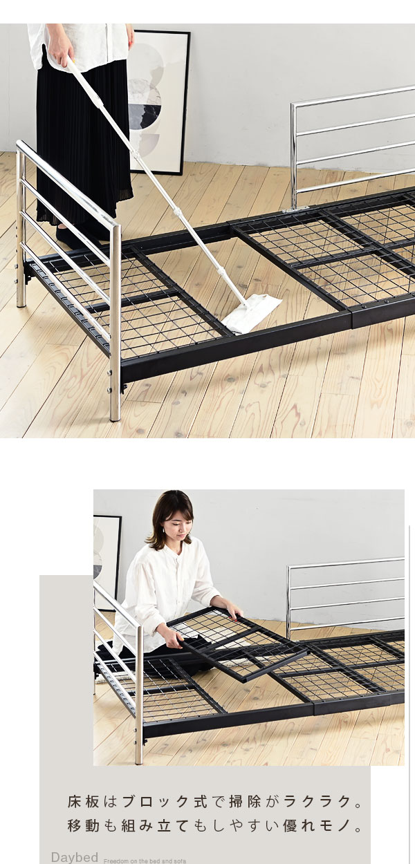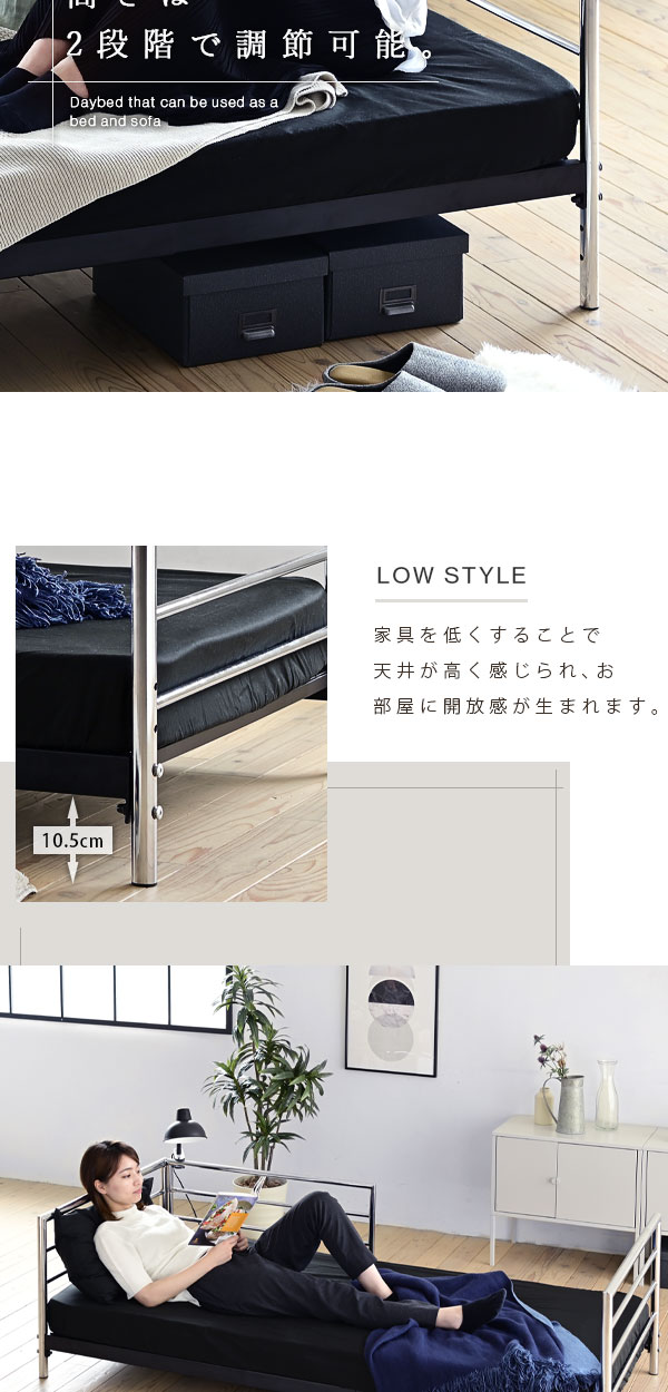 ベッドソファ デイベッド ソファ ベッドフレーム ロータイプ ショート セミシングル パイプベッドフレーム スチールベッド 高さ調整 低い コンパクト 黒 187 83 【代引/同梱不可】