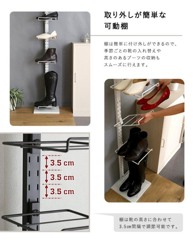シューズラック 突っ張り スニーカー 革靴 ディスプレイ ラック 隙間収納 玄関 収納 シューズ棚 シューズ収納 おしゃれ ハイカット ローカット 見せる収納