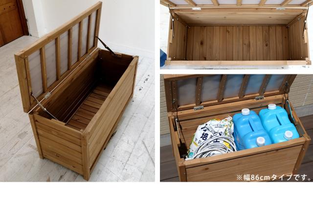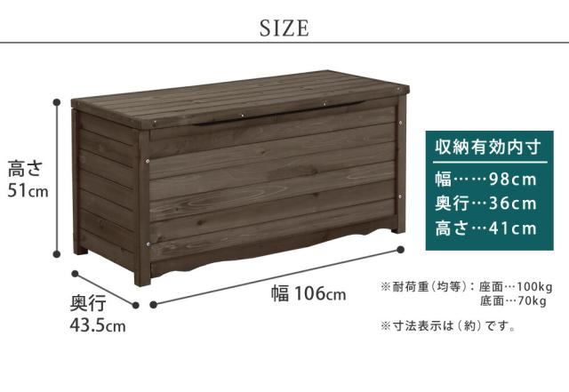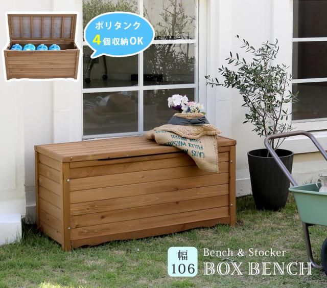 天然木製ボックスベンチL 幅106 スツール 木製 椅子 収納 倉庫 ウッドボックス 物置 庭 物入れ ポリタンク 大容量 ガーデン 屋外 エクステリア ベンチストッカー 【代引不可】