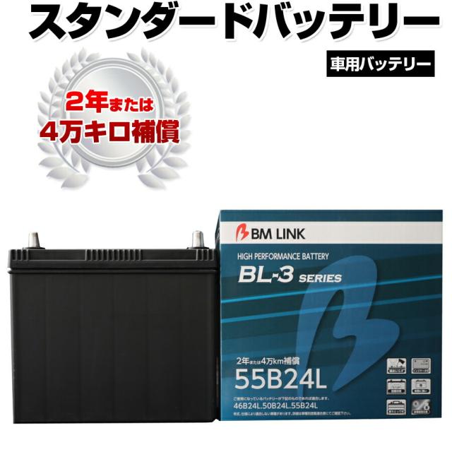 カーバッテリー 55B24L BM LINK BL-3シリーズ スタンダードバッテリー 車用バッテリー メンテナンスフリー 46B24L 50B24L 互換 2年または4万km補償 【代引/同梱不可】