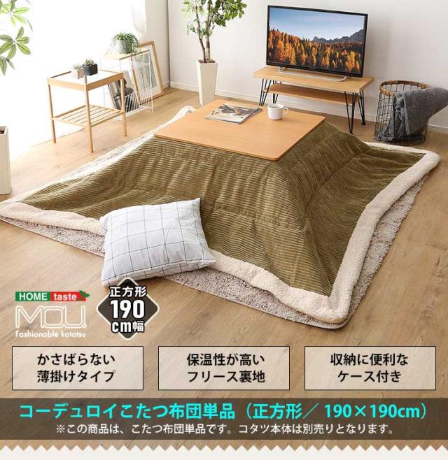 こたつ布団 薄掛けタイプ 正方形(190×190cm)単品【mou-ムー-】 収納ケース付き 掛け布団 大きい 大判 こたつ掛け布団 掛布団 薄手 シンプル