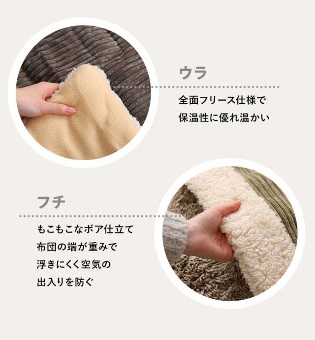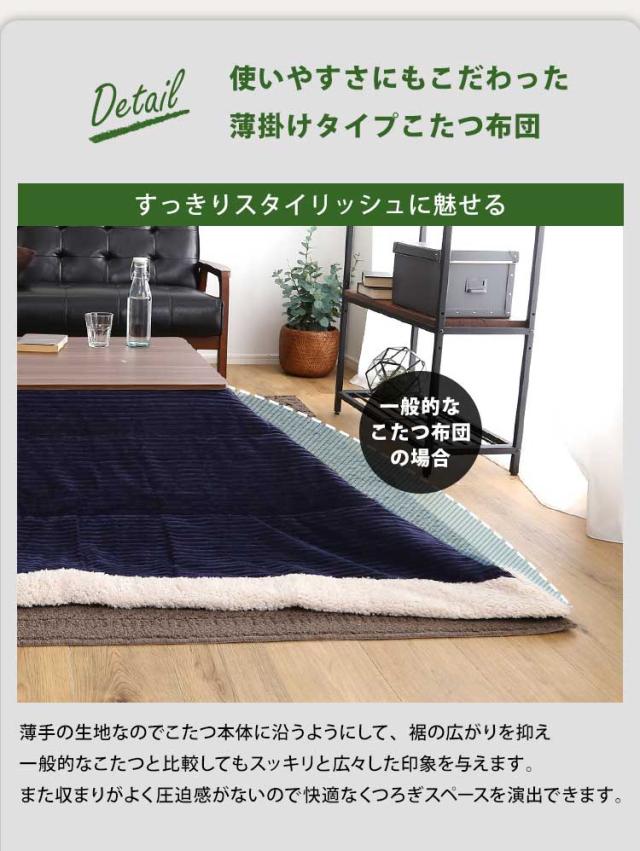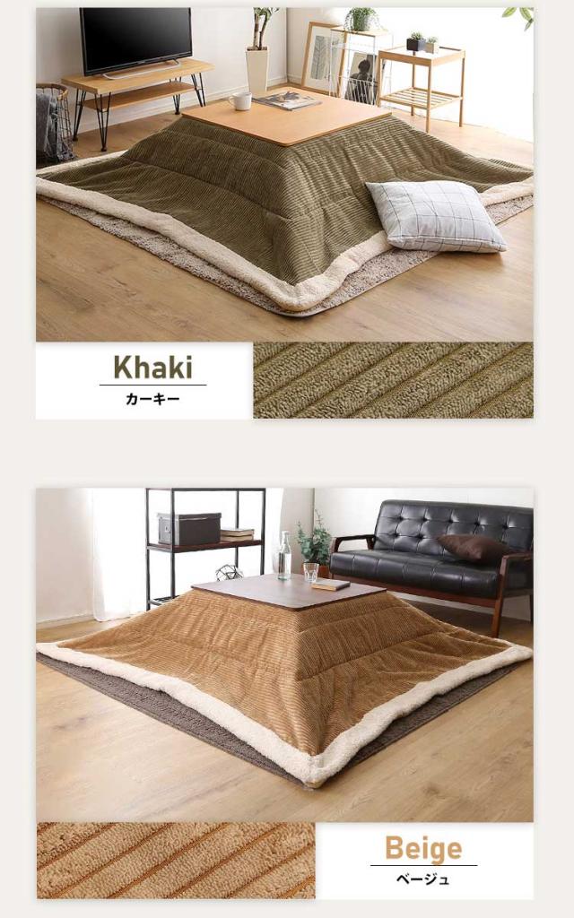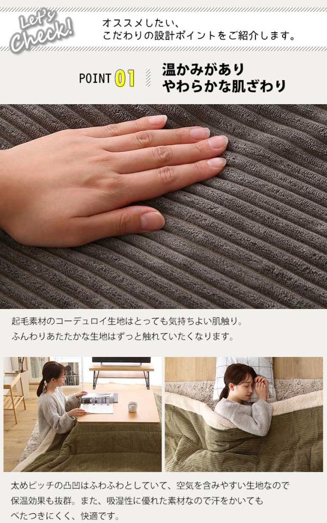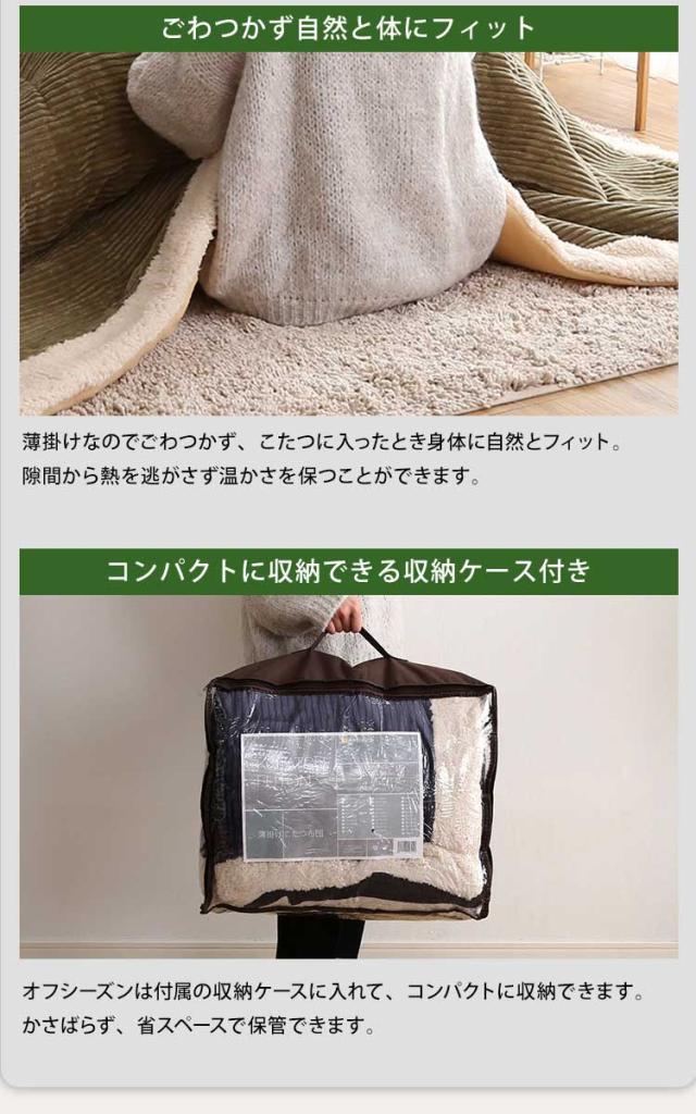 おしゃれなコーデュロイ生地の薄掛けこたつ布団 コタツ 炬燵 布団 こたつ薄掛け布団 省スペース 収納付き 北欧 かわいい グレー ベージュ カーキ