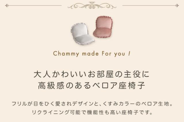 ベロア座椅子 【Chammy -チャミー-】 座椅子 リクライニング 14段階 日本製 座いす 椅子 チェアー おしゃれ ふかふか 大人かわいいインテリア 1人掛け 一人暮らし 新生活 【代引不可】